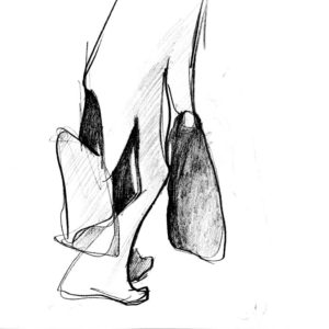 Theaterkollegin Stefanje Meyer aus Hamburg malt und zeichnet in ihrer Freizeit charmante Momentaufnahmen: Ihre lines and blots beschreiben oft ironisch, immer liebevoll Menschen in ihrer natürlichen Umgebung. “Manchmal ist der Moment der Begegnung so schnell vorbei, dass nur der persönliche Eindruck auf dem Papier bleibt.” In ihren sozialmüden Phasen wendet sie sich eben dieser natürlichen Umgebung zu: Landschaften erkunden zwischen zwei Ästen.
